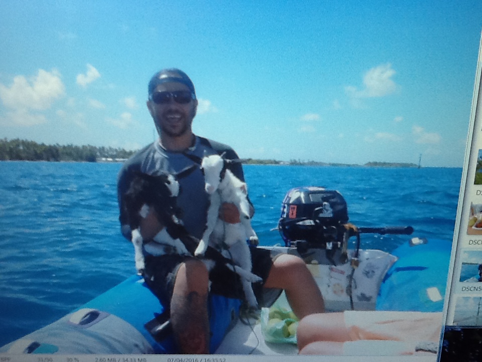 Another boat, Silent Sun, sailed in through the pass 15 minutes in front of us. The crew of Chris & Jess spent a few months here last year and had been asked to bring back a pair of goats to start an breeding population. The young goats were very pretty and seemed lovable when they left the Marquesas on a 37ft sailing boat, but we heard that this love-affair tarnished after 4 or 5 days of converting useful boat gear into excrement. Still they arrived healthy, started eating again immediately, and are now attached to their new owner.