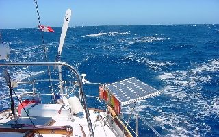 Since hitting West 126 deg. we have been running downwind wing on wing (goose winging) during the day and under headsail at night. This is taking us pretty well due south along West 126 deg. (now known as 126 street) Little bit of a rock and roll ride as the seas build but very manageable.